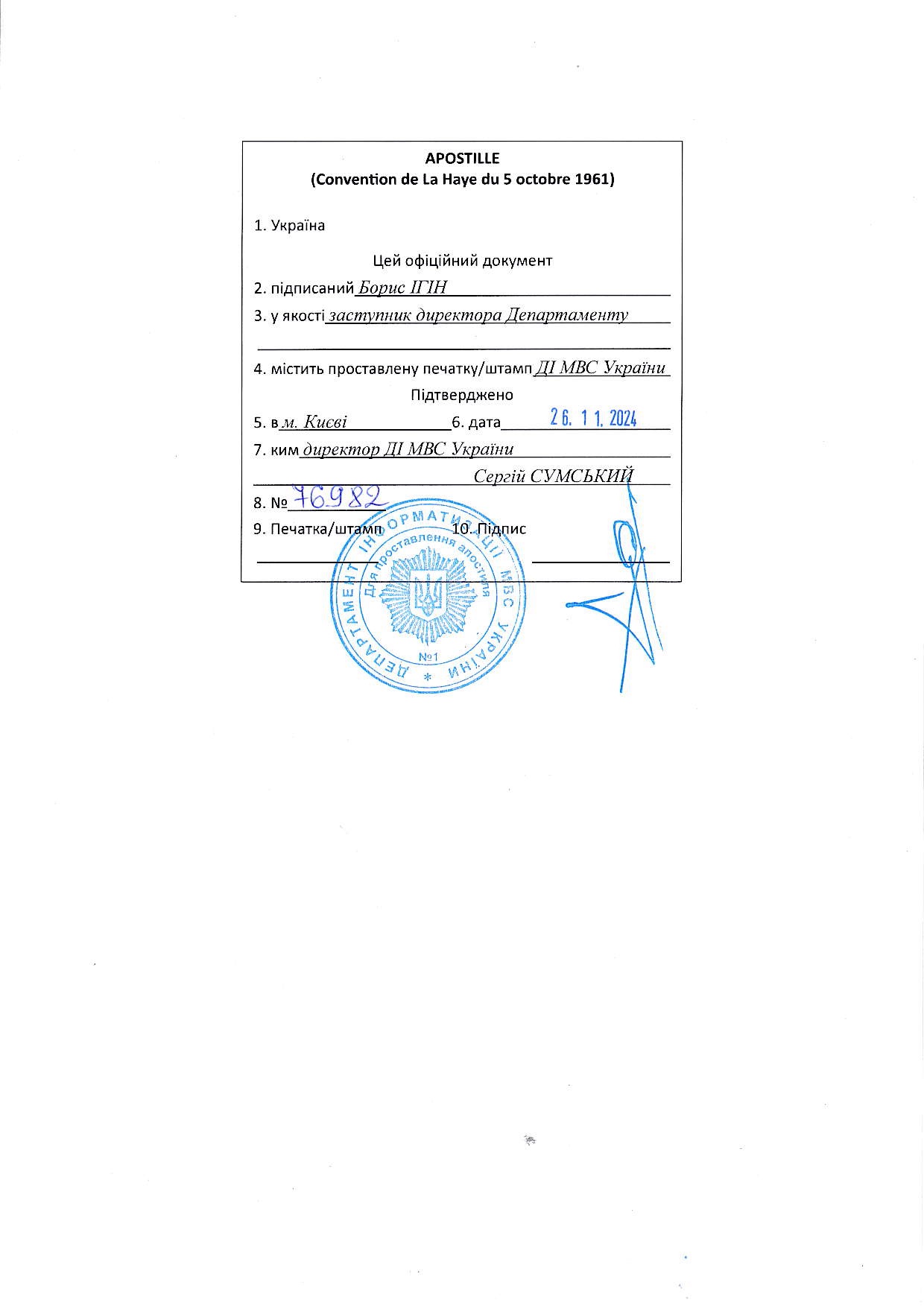 Довідка (витяг) про наявність судимості + АПОСТИЛЬ